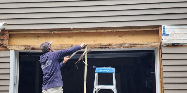 Most painting companies stop at painting; we're not most companies. Every one of our teams has an experienced carpenter on site at all times. We regularly repair and replace wood rot, animal and insect damage, and poor craftsmanship, like the issue you see in the image to the left. Bowing from an improper header caused water damage so we replaced the header and the rotted wood and closed it up so you could never tell we were there.